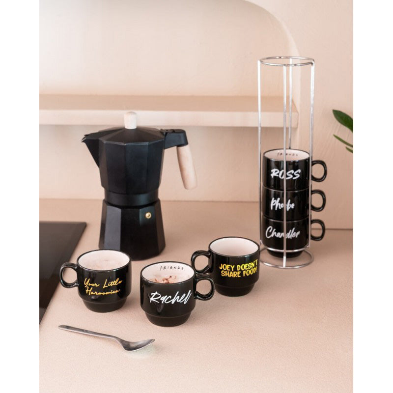 Pasinerkite į kultinio televizijos serialo „Friends“ atmosferą su šiuo unikaliu keraminių puodelių rinkiniu. Rinkinį sudaro 6 puodeliai su personažų vardais ir jų ikoniškiausiais gerbėjams amžinai įsiminusiais citatais.