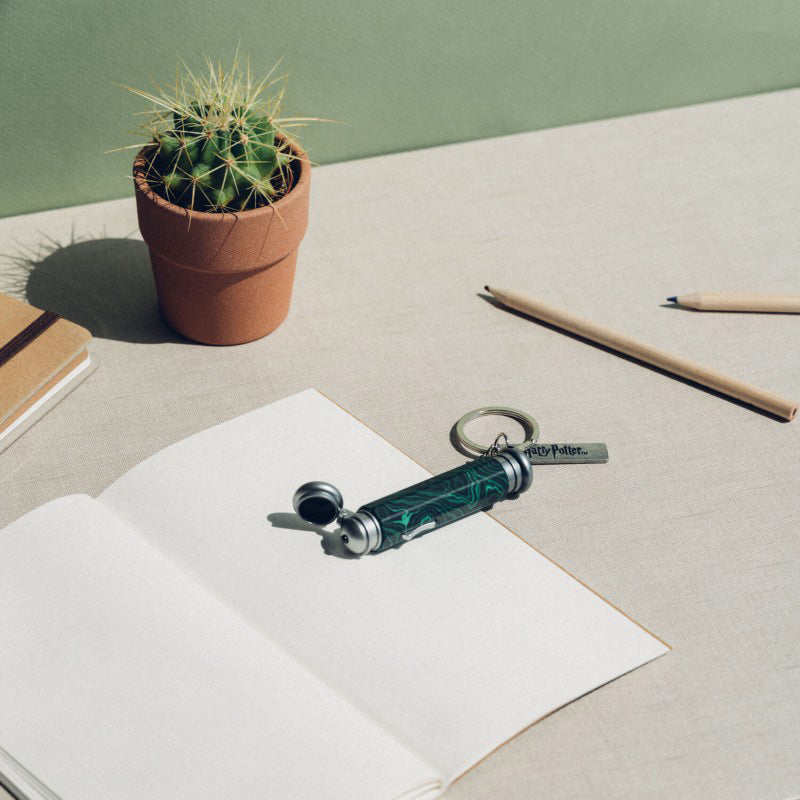 Raktų pakabukas su žibintuvėliu, įkvėptas Albus Dumbledore Deliuminatorius! Atraskite praktiškumo magiją kasdieniame gyvenime su šiuo unikaliu raktų pakabuku. Jame yra šaltos šviesos apšvietimo režimas, kuris suteiks patikimą šviesos šaltinį net tamsiausiose magiškų labirintų vietose. Raktų pakabukas pagamintas iš aliuminio ir ABS, jis yra tvirtas ir ilgaamžis, puikiai tinka bet kokiai kelionei po raganų ir burtininkų pasaulį. Maždaug 85 x 20 mm matmenys daro jį praktišku ir patogiu, puikiai tinkantį jūsų raktams. Maitinamas trimis 1,5 V LR44 baterijomis (pridedamos). Produkto savybės: Įkvėptas Albus Dumbledore Deliuminatorius; Šalta šviesa; Pagamintas iš aliuminio ir ABS patvarumui užtikrinti; Kompaktiškas dydis: apie 85 x 20 mm; Maitinamas 3 x 1,5 V LR44 baterijomis (pridedamos); Oficiali gamintojo licencija.